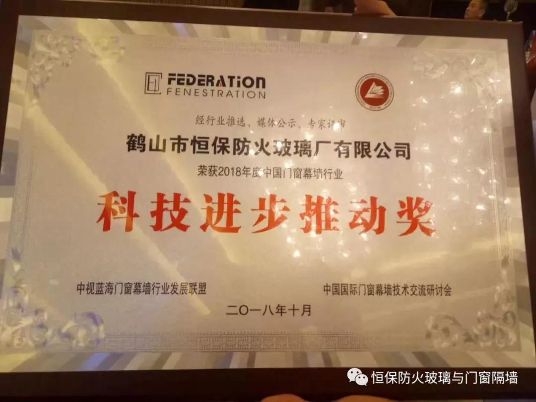 鶴山恒保公司在此次交流研討會(huì)中,獲大會(huì)專家評審并頒發(fā)2018年度中國門窗幕墻行業(yè)“科技進(jìn)步推動(dòng)獎(jiǎng)”。