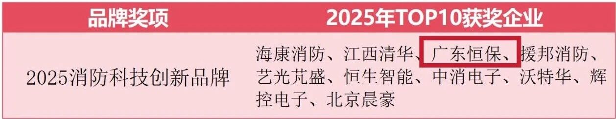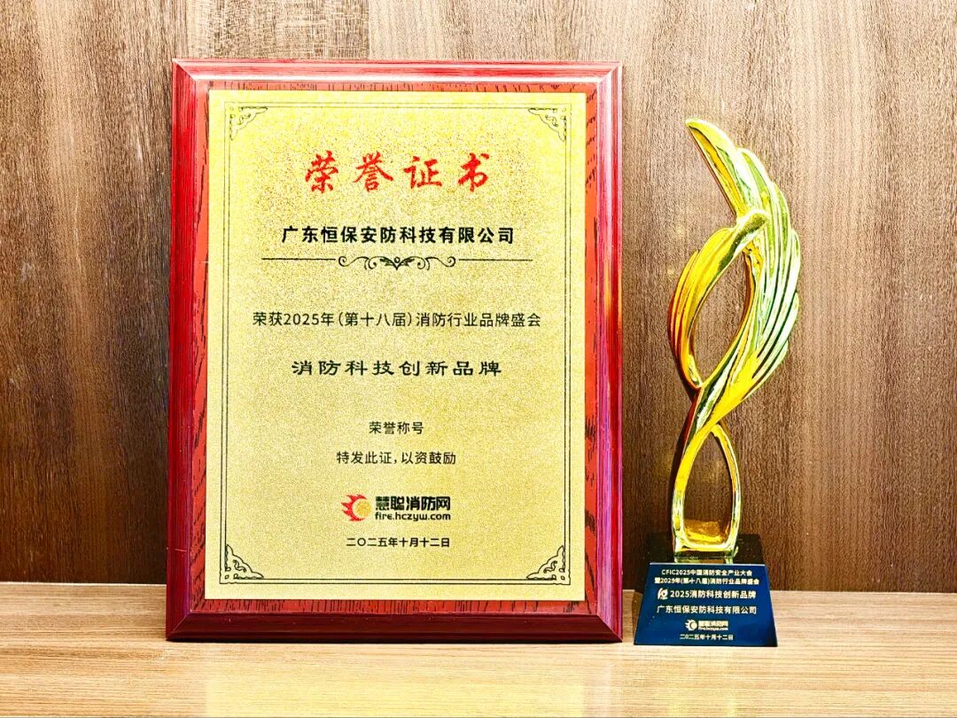 在消防行業(yè)創(chuàng)新浪潮與技術(shù)變革的關(guān)鍵節(jié)點,恒保公司憑借深厚的技術(shù)積累與前瞻性的研發(fā)布局,在眾多企業(yè)中脫穎而出,榮獲 “2025 消防科技創(chuàng)新品牌” 獎項。